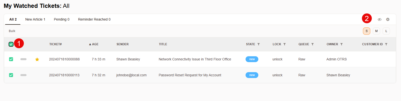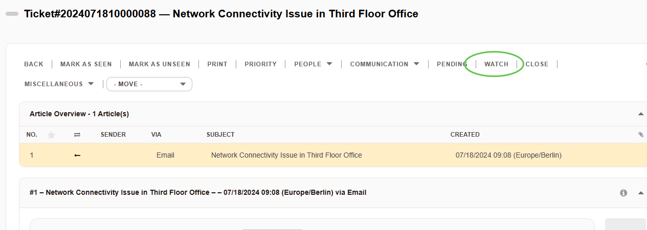 1. Navigate to the Watched Ticket View: Log into your Znuny dashboard and go to the ticket watcher overview section where your tickets are listed.