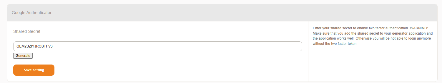 The agent or customer will log in, go to their preferences, and choose to generate or manually enter their secret (16 Characters: Capital A-Z or 0-9).