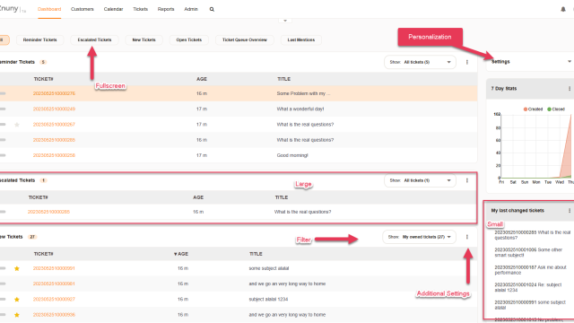 Your organization offers an overgrowing pallet of services. Customers of your organization rely increasingly on specialists who are capable and willing to manage their requests. Large international teams, mall decentralized offices and agile teams with many roles per individual: All of these require flexible, reliable and self-sufficiency. Znuny's Agent Dashboard, is the start of a well-organized day.