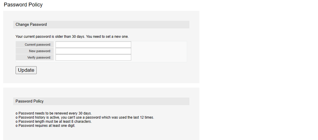 Note: This is only for local users! If you use a directory server for authentication or single sign-on, this package will not allow you to change your password.
