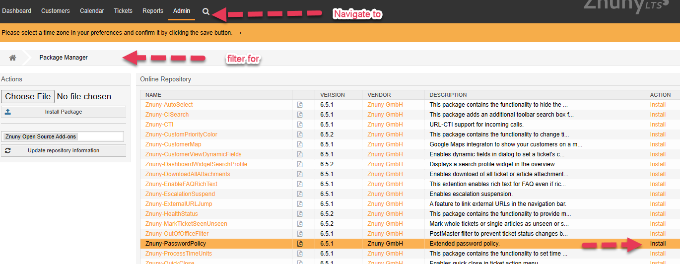 To use this add-on, you need to install it from the package manager from the Znuny Open Source Add-On online repository.